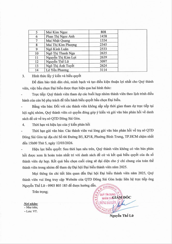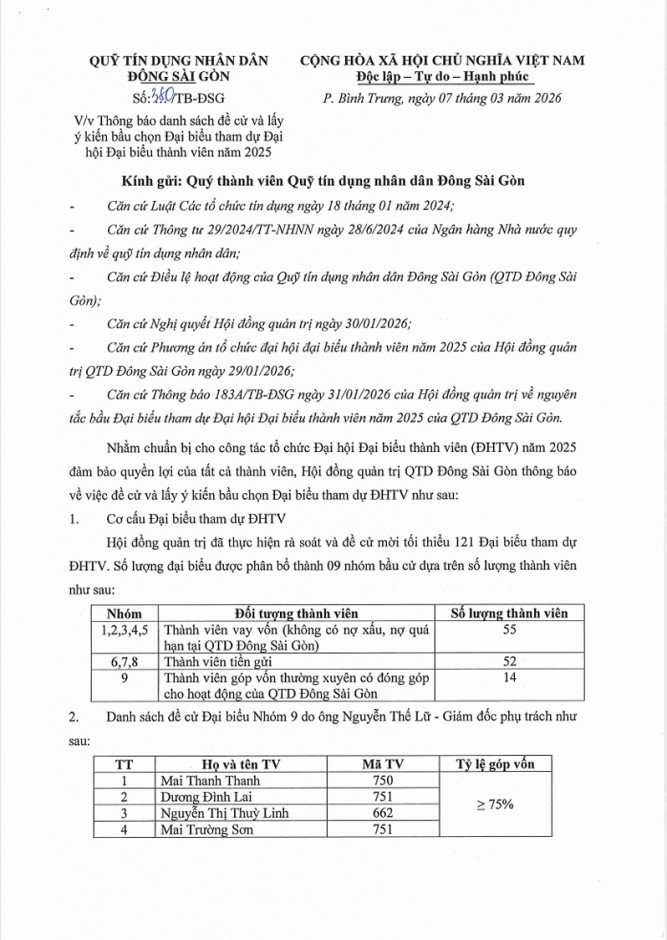 Thông báo danh sách đề cử và lấy ý kiến bầu chọn Đại biểu tham dự ĐHĐBTV năm 2025 (Nhóm 9)